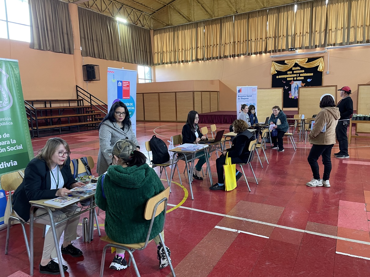 La abogada Marcela Tapia atendió consultas de la comunidad en el gimnasio de la escuela "Laura Vicuña", de la población "Yáñez Zavala", en Valdivia.