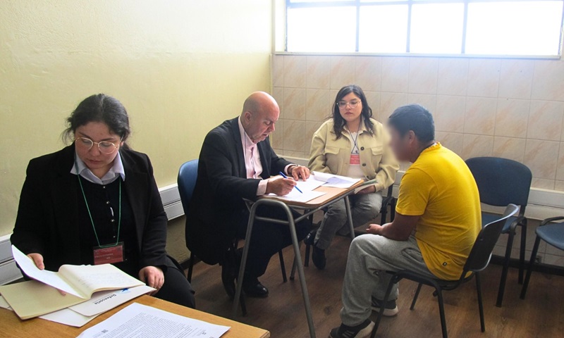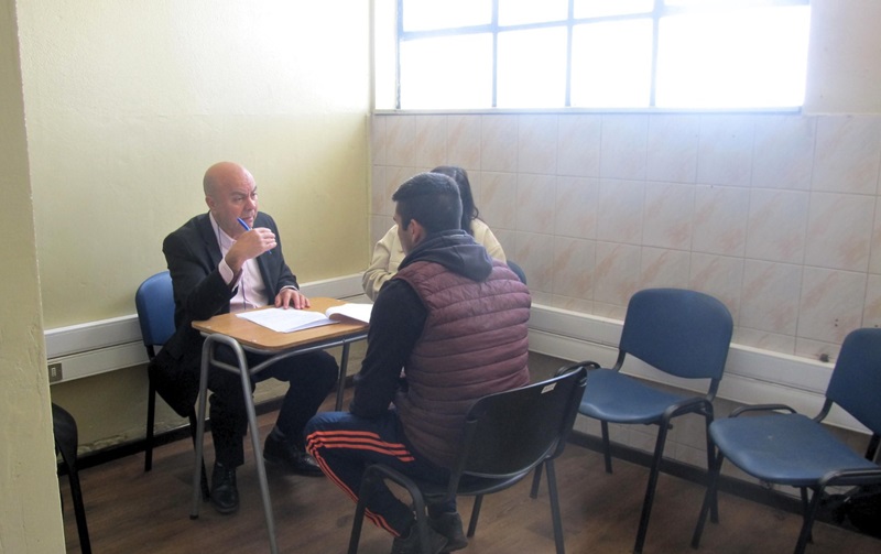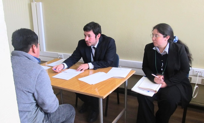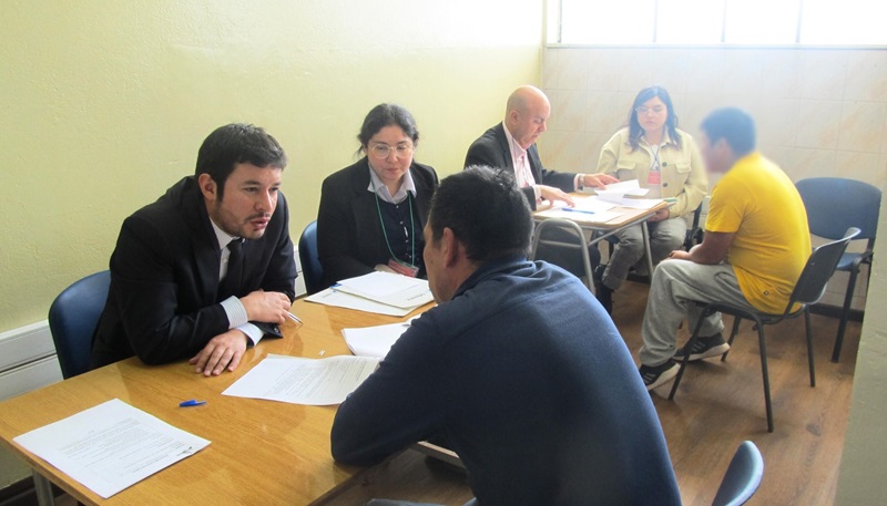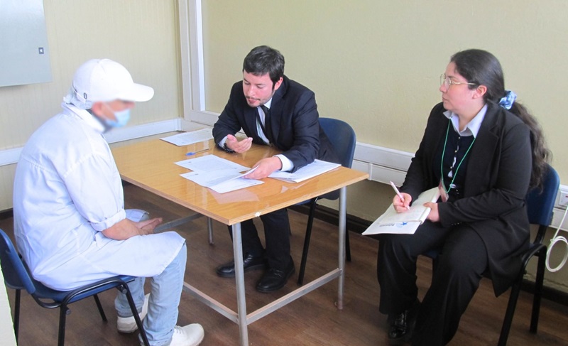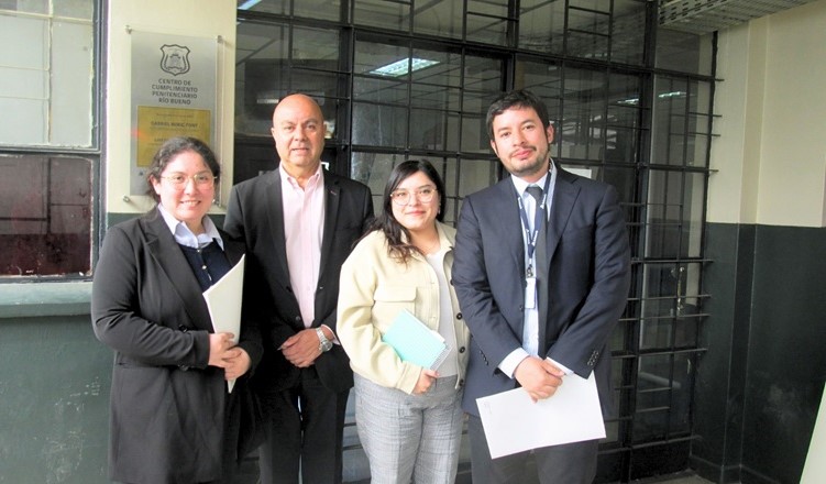 El Defensor Regional de Los Ríos, Luis Soto Pozo y el jefe de Estudios de esa Defensoría, Juan Pablo Alday, junto a las licenciadas en derecho y postulantes en práctica en la institución, Gabriela Manzano y Daniela Hinrichsen, atendieron consultas de internos en torno a derechos penitenciarios en el Centro Penitenciario Río Bueno.